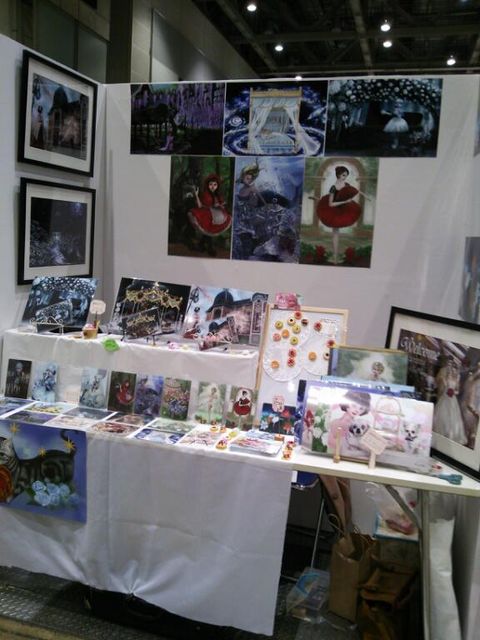 今回は、思い切って机を長いのにしました!おかげさまで、出入りが机の下からと手伝いに来てくれた騎乃には迷惑をかけました…(ごめんよ)。その分、沢山作品を置けましたが、それでも全部置ききれず…(^^;)出入りの関係で、壁ペイントは今回は辞めました。なのでお客さんに背を向けることなく今回はいけたと思います。ただ、私がチキンなばかりに、お話できなかった方がやはりいらして(´;ω;`)暇な時は暇なのに、何人かいらしている時にきちんと対応できなかったような気がして今回も反省(´・ω・`)