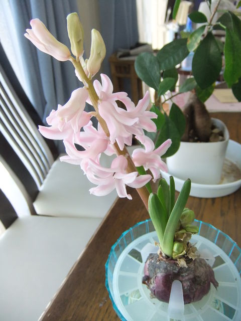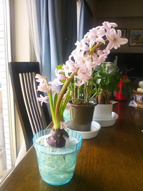 葉っぱが青のと比べて全然でお花も控えめ…わびさびなヒヤシンスさんでした(ノ´▽`)ノ香りも青より甘い感じで、心地の良い子でした。