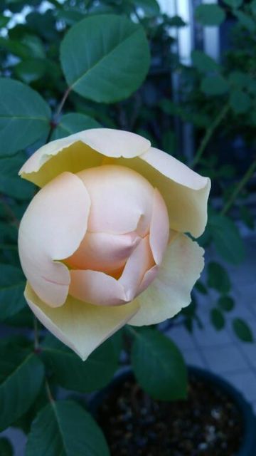 ずっと気になっていた薔薇で、コロンとした形も評判の香りも楽しみで。