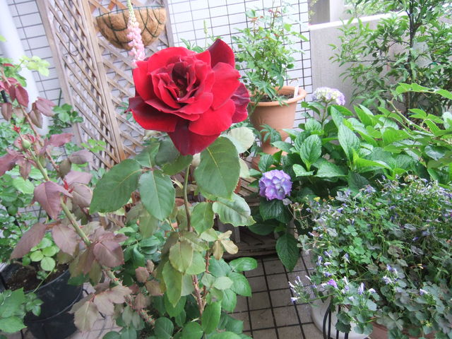 ミスターリンカーンはイケメンです。真っ赤なビロードのような花弁で大人な香りムンムンです(ノ´▽`)ノエモ様よりも棘もすごいし枝も太い、ただ直立に伸びるのが良いところ(*´∀`*)しかし1.8mとデータにはありますが、この夏は3m近くまで伸びました( ;°Д°)ちゃんと剪定しても伸びました…ので結局再度切りました( *´艸`)背が高いのでお外の人も綺麗ですね~と声掛けてくれました(*´∀`*)よっ、色男(ノ´▽`)笑