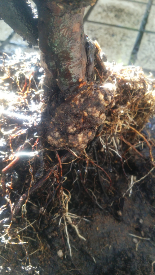 土替え12月30日、根は白い根が出始めていたけど少なめの根で、根元に癌腫っぽい瘤が。゚ヽ(゚`Д´゚)ノ゚。ウァァァン削ってみたけどどうかな…鉢なのでこのまま栽培したいと思います。