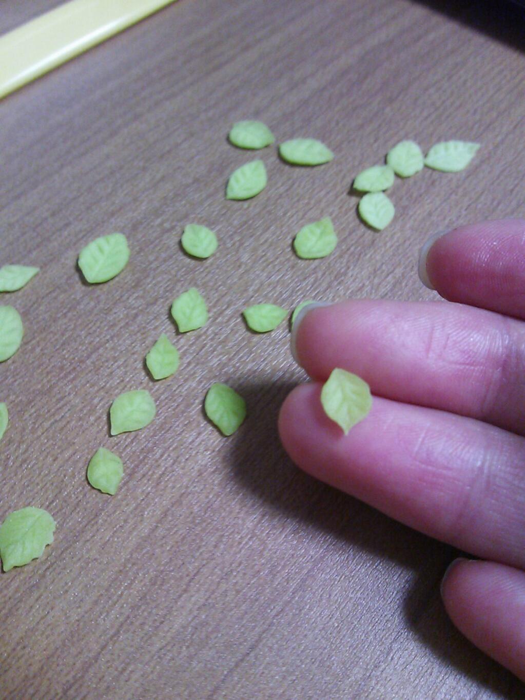 樹脂粘土で作った小さな葉っぱ…ひとつひとつ作って