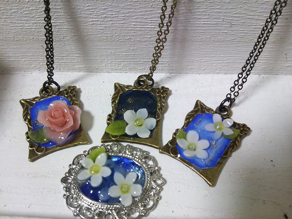 同じく粘土のお花も小さく作ってネックレスにしましたヾ(@^▽^@)ノ