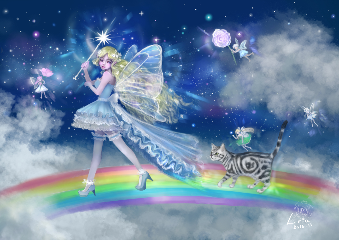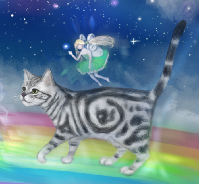 先月、我が家の愛猫が天に召されてしまいました。さびしがりで怖がりな子なので、無事に虹を越えて天国に行けるよう願います。そしてまた家に遊びにきてね。という願いをこめて。