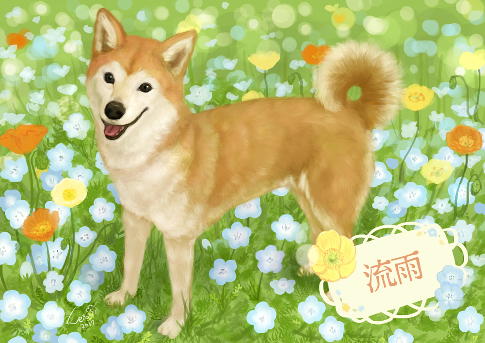かわいらしい笑顔と、くるんとした尻尾などとても楽しく描かせていただきました。