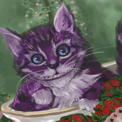 そういえば、チシャ猫とハートの女王のイラスト完成しました。