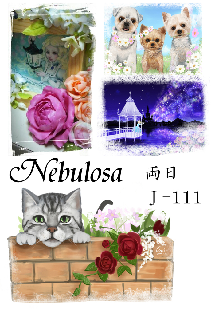 いつも通りイラストの展示販売予定です。粘土のお花を飾った額もお持ちできる…はず。