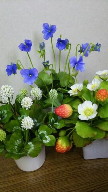 テントウムシもちゃんと粘土でつくったので、是非生で色々な方に視ていただけたらと思います。これらの粘土のお花、ひとつひとつ樹脂粘土で作っております。