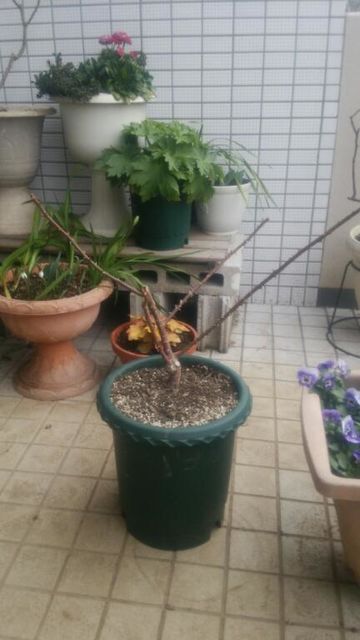両手を広げるように伸びました。写真は土替え鉢増しの時のもの。枝はぴゅーんと伸びました。