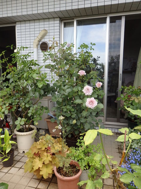 以上が一番花です。4月27日に開花し6輪くらい咲きました。5月2日に鉢増ししました。