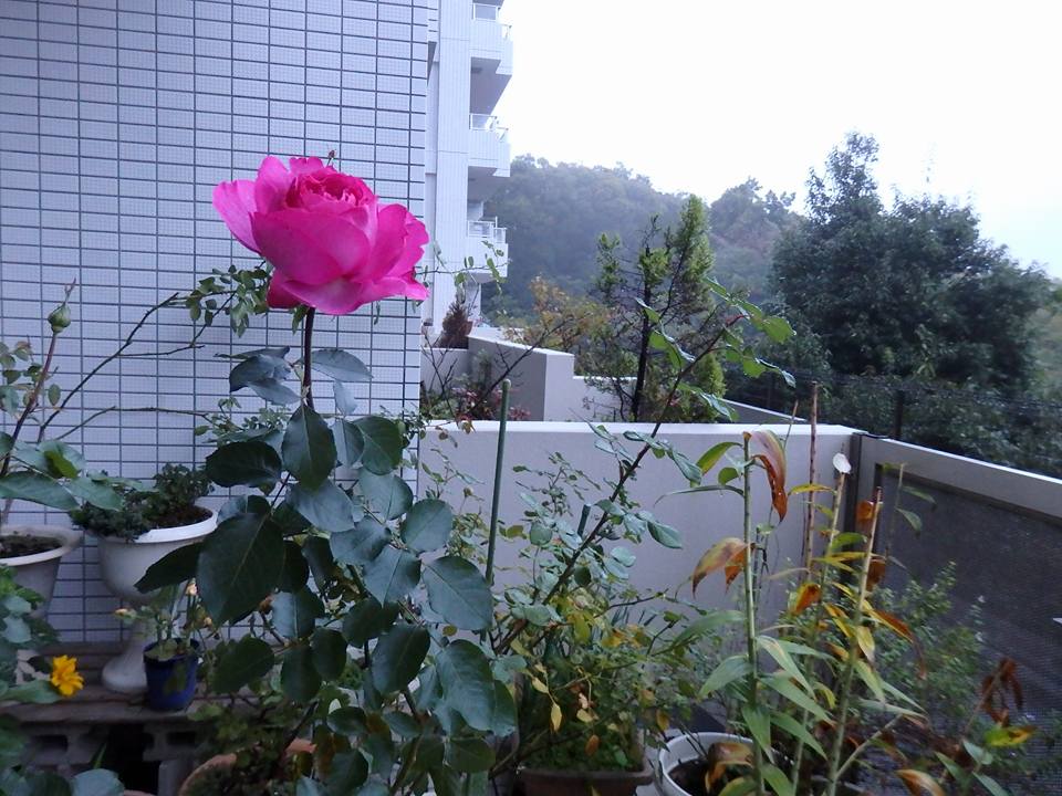 ジュビリーさんは春に30近くのお花を咲かせて夏は夏バテ、秋に1輪でした。